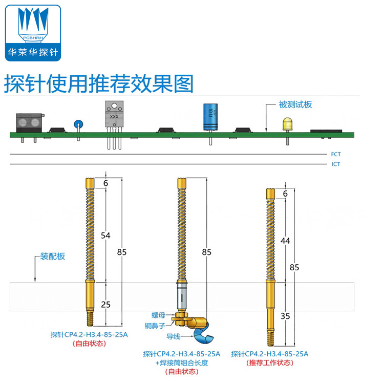 此外,大電流探針一般采用高導電率材料制成,如鈹銅,以確保在高電流環境下穩定工作,接觸電阻通常小于30毫歐姆。其彈簧力一般在650g - 1000g左右,以保證探針與測試點的穩定接觸,同時,這類探針的機械壽命通常大于50萬次。