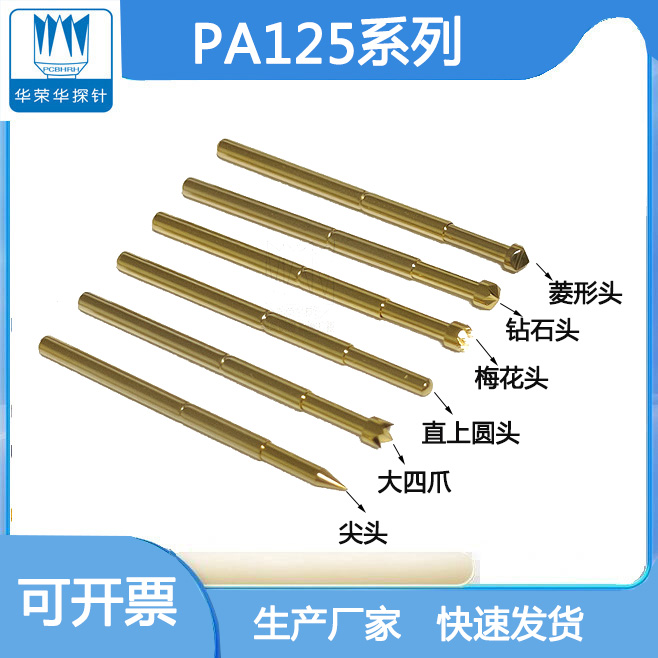 1. 產品概述:“P125測試探針”是一個通用的型號或系列名稱,它可能包含多種具有不同頭型(如尖頭、平頭、九爪梅花頭等)和規格的測試探針。這些探針通常用于PCB測試、ICT測試等場景,以檢測電路板上的電氣連接和信號傳輸是否正常。