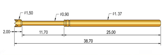 5、SP135探針的探針直徑:1.37mm,總長:38.70mm,探針頭型多種多樣,滿足不同的測試需求,彈力分別有1N/2N/3N。