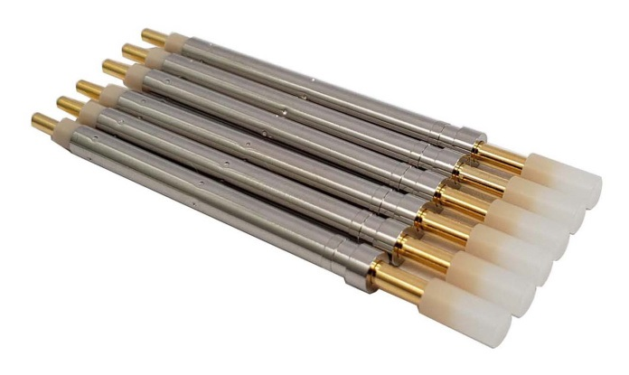 具備固定接觸方向的結(jié)構(gòu)設(shè)計(jì)(如僅允許垂直/水平單向接觸),可精準(zhǔn)對準(zhǔn)被測點(diǎn),避免偏移導(dǎo)致的接觸失效,針尖多為尖形或楔形,適配特定布局的被測對象(如密集排列的芯片引腳、側(cè)置端子),常見于微型電子器件測試,如傳感器引腳的側(cè)向?qū)z測、高頻信號傳輸?shù)亩ㄏ蜻B接,部分型號支持高頻(>1GHz)信號無失真?zhèn)鬏敗?/p>