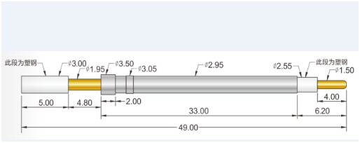開關(guān)探針的采用的材料是鈹銅,套管用的是磷銅,彈簧采用的是琴鋼線,鍍3u金厚,可過3A電流,壽命可達(dá)10萬次1)產(chǎn)品定位精度高   2)產(chǎn)品過載穩(wěn)定   3)產(chǎn)品測(cè)試誤判率低