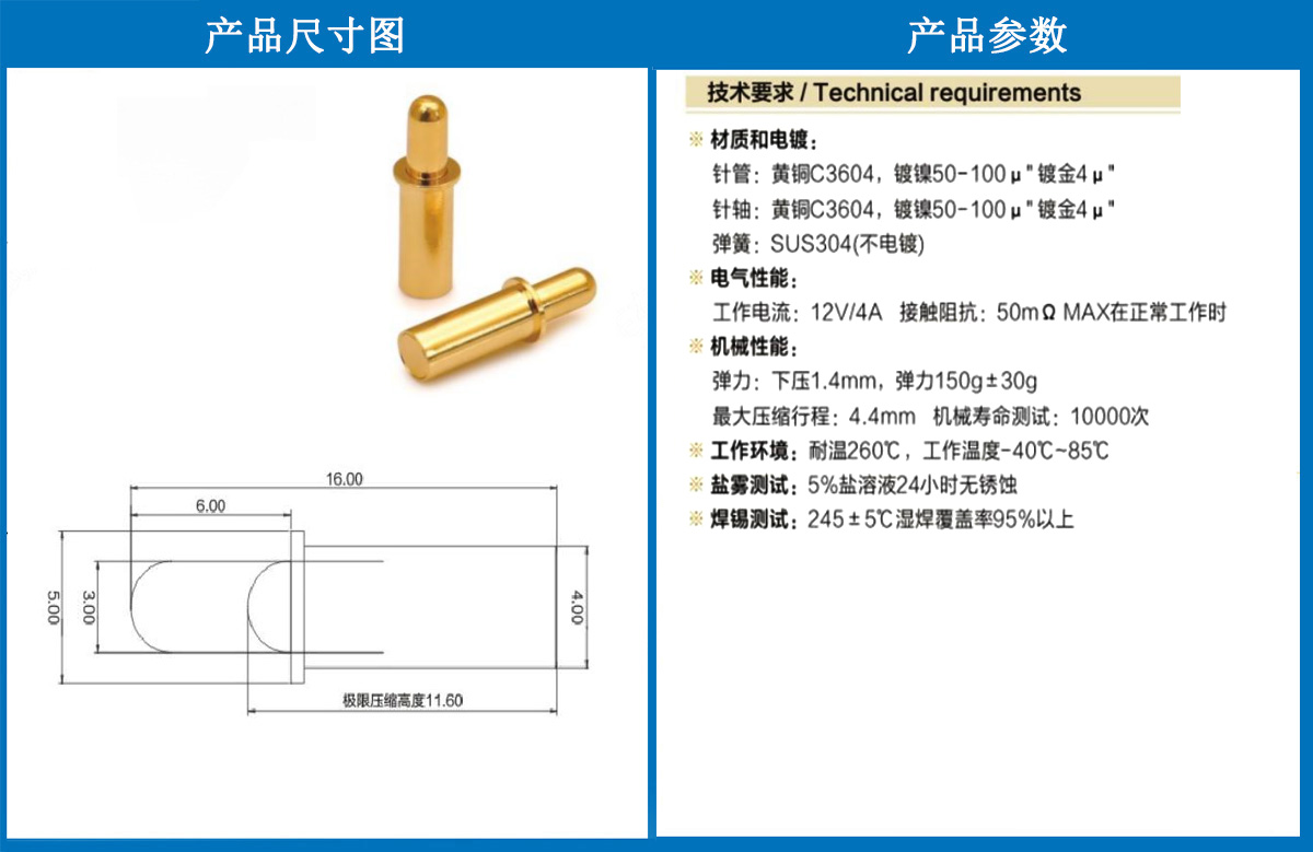 5.0*16電極針 當(dāng)前位置:首頁 » POGO PIN充電彈簧頂針 » 電極針