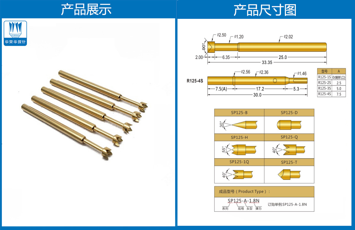 產品簡介:SP125探針、2.02mm測試針、總長33.35mm、彈簧針、測試針、頂針